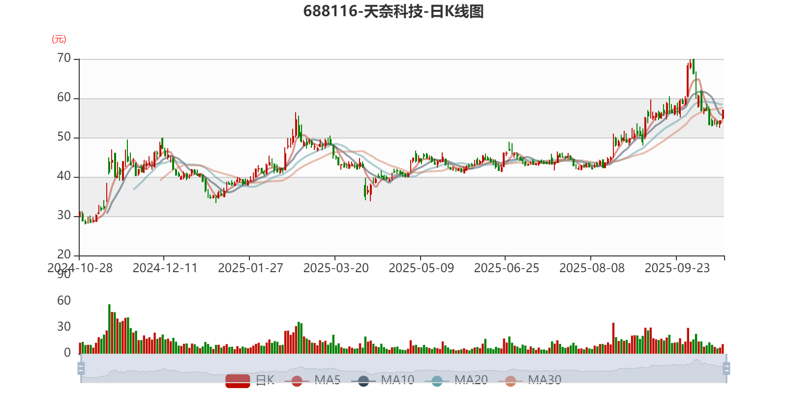 中证智能财讯天奈科技(688116)10月27日披露2025年第三季度报告。前三季度公司实现营业总收入10.01亿元,同比下降3.79%;归母净利润1.96亿元,同比增长7.39%;扣非净利润1.73亿元,同比下降1.79%;经营活动产生的现金流量净额为1.22亿元,同比增长65.36%;报告期内,天奈科技基本每股收益为0.55元,加权平均净资产收益率为5.72%。