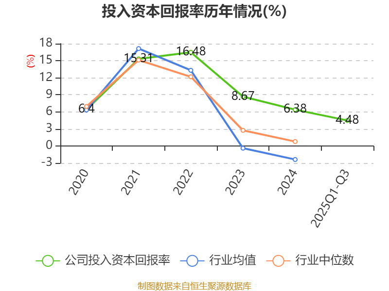 盈利能力方面, 2025年前三季度公司加权平均净资产收益率为5.72%,同比下降0.81个百分点。公司2025年前三季度投入资本回报率为4.48%,较上年同期下降0.19个百分点。