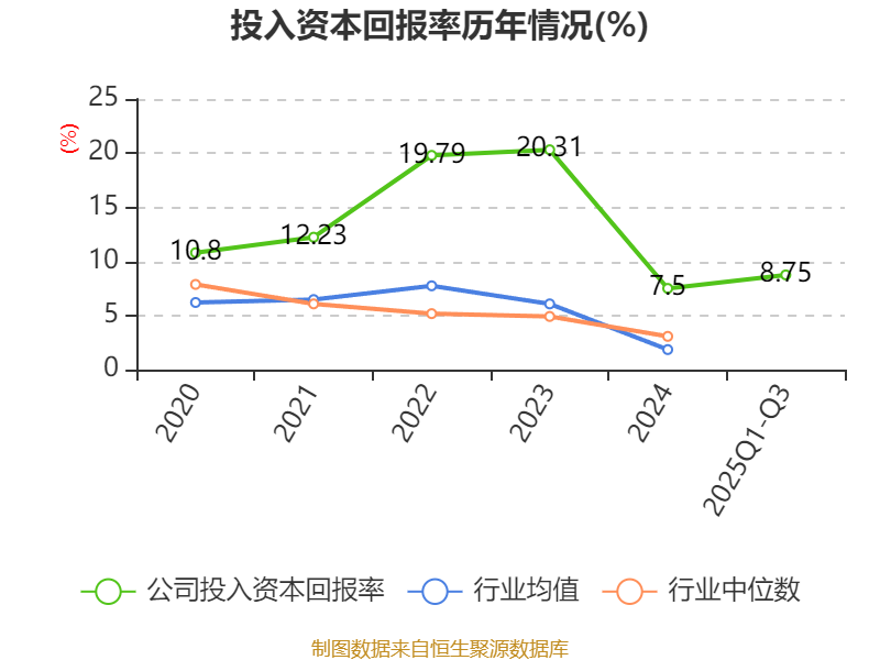 盈利能力方面, 2025年前三季度公司加权平均净资产收益率为9.89%,同比上升1.58个百分点。公司2025年前三季度投入资本回报率为8.75%,较上年同期上升1.92个百分点。