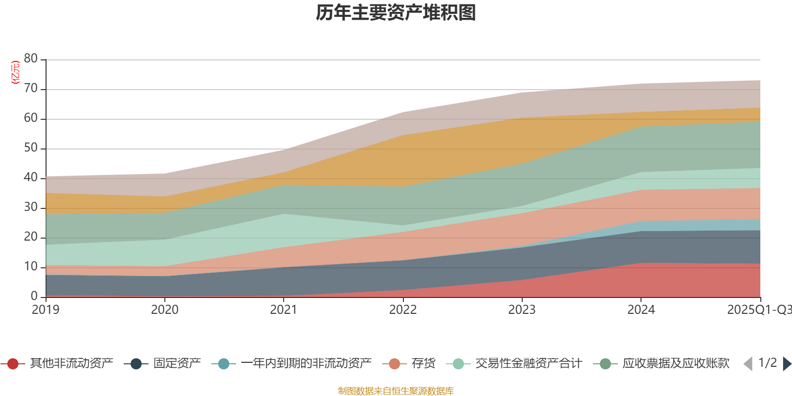 资产重大变化方面,截至2025年三季度末,公司交易性金融资产合计较上年末增加12.67%,占公司总资产比重上升0.91个百分点;应收款项融资较上年末减少65.51%,占公司总资产比重下降0.64个百分点;其他非流动资产较上年末减少2.34%,占公司总资产比重下降0.61个百分点;固定资产较上年末增加5.4%,占公司总资产比重上升0.56个百分点。