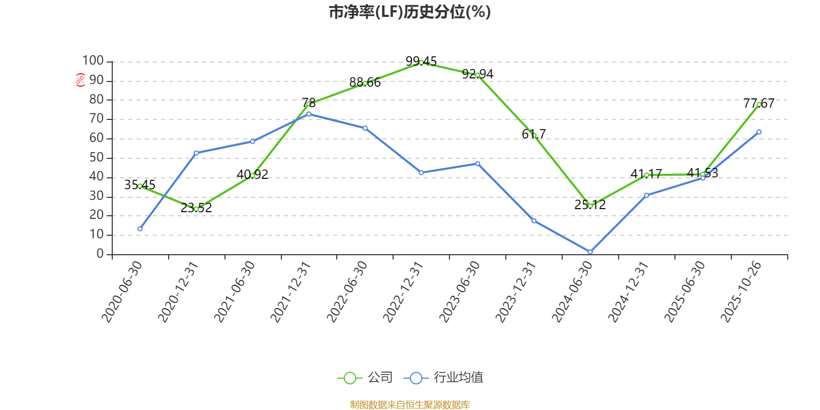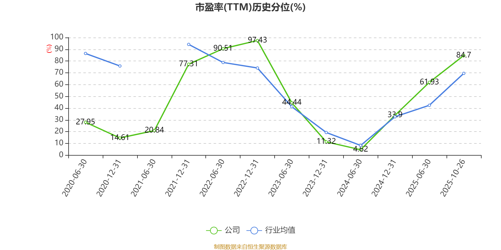 市盈率、市净率为负时,不显示当期分位数,会导致折线图中断。