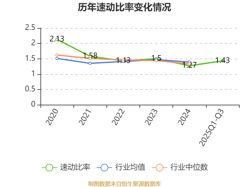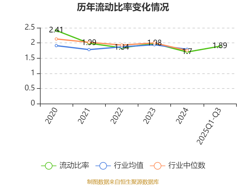 2025年前三季度,公司流动比率为1.89,速动比率为1.43。