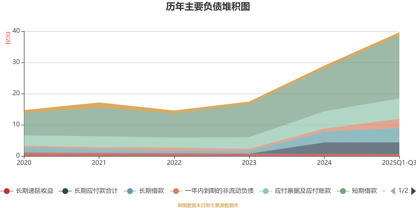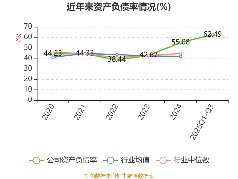 负债重大变化方面,截至2025年三季度末,公司短期借款较上年末增加47.77%,占公司总资产比重上升5.83个百分点;一年内到期的非流动负债较上年末增加207.15%,占公司总资产比重上升2.84个百分点;长期应付款合计较上年末增加2.69%,占公司总资产比重下降1.04个百分点;长期借款较上年末增加32.47%,占公司总资产比重上升0.64个百分点。