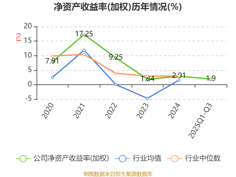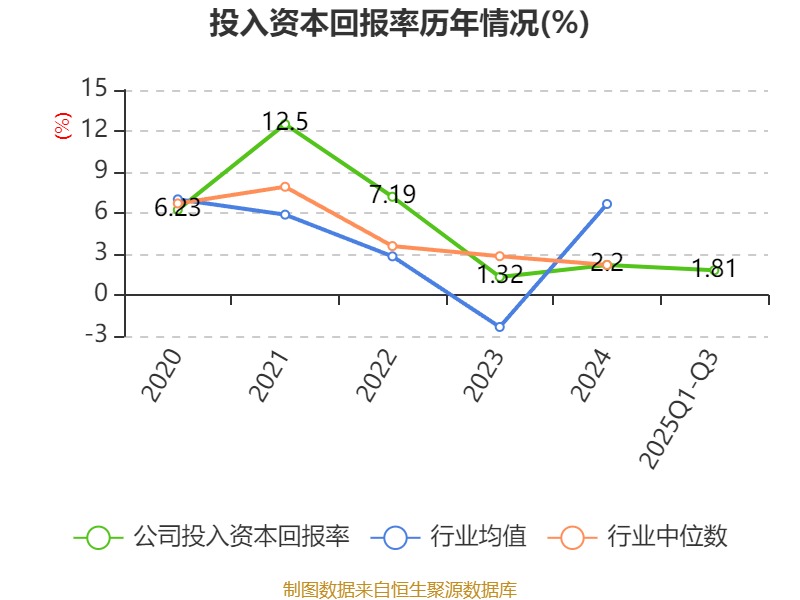 盈利能力方面, 2025年前三季度公司加权平均净资产收益率为1.9%,同比下降0.87个百分点。公司2025年前三季度投入资本回报率为1.81%,较上年同期下降0.35个百分点。