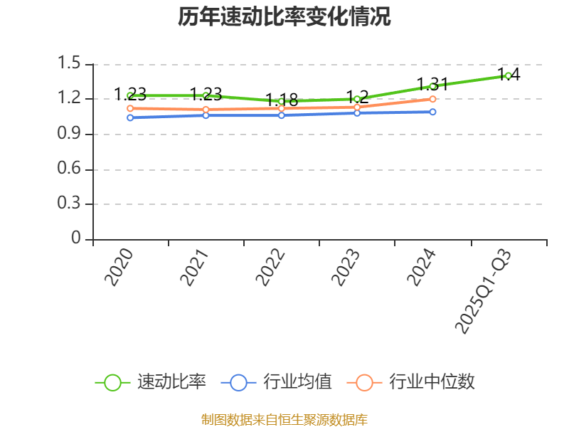 2025年前三季度,公司流动比率为1.81,速动比率为1.4。