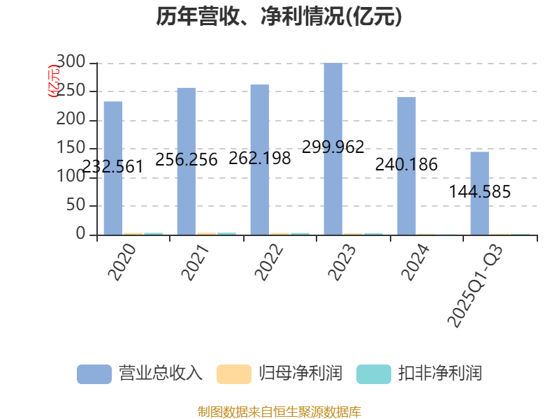 中证智能财讯嘉事堂(002462)10月27日披露2025年第三季度报告。前三季度公司实现营业总收入144.59亿元,同比下降21.80%;归母净利润1.41亿元,同比下降38.81%;扣非净利润1.3亿元,同比下降23.12%;经营活动产生的现金流量净额为9.32亿元,同比增长428.56%;报告期内,嘉事堂基本每股收益为0.48元,加权平均净资产收益率为3.23%。