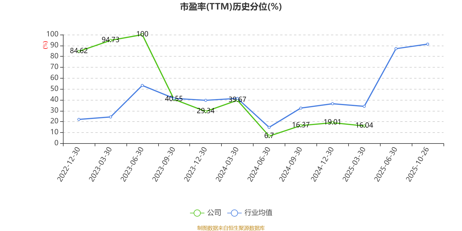 市盈率、市净率为负时,不显示当期分位数,会导致折线图中断。