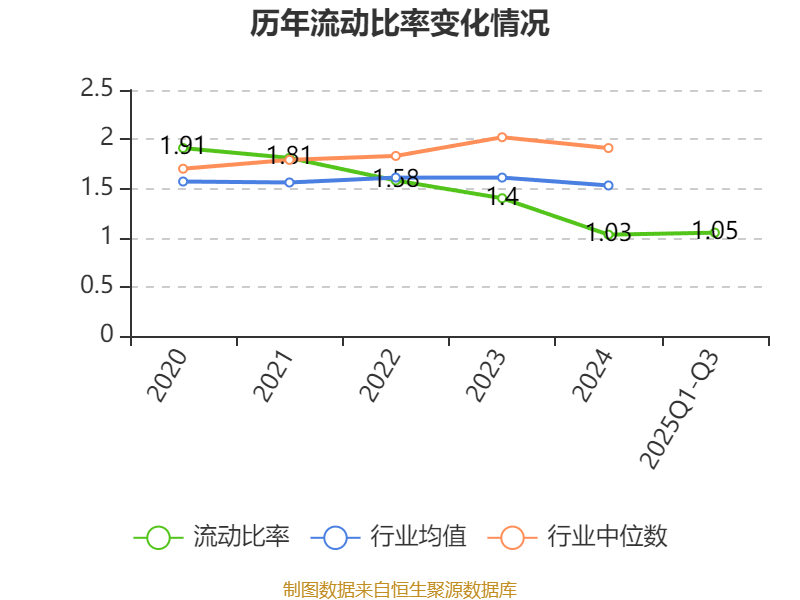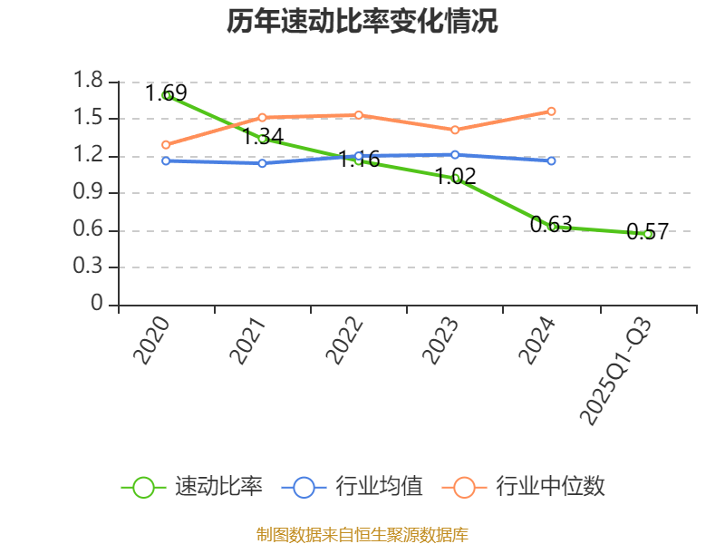 2025年前三季度,公司流动比率为1.05,速动比率为0.57。