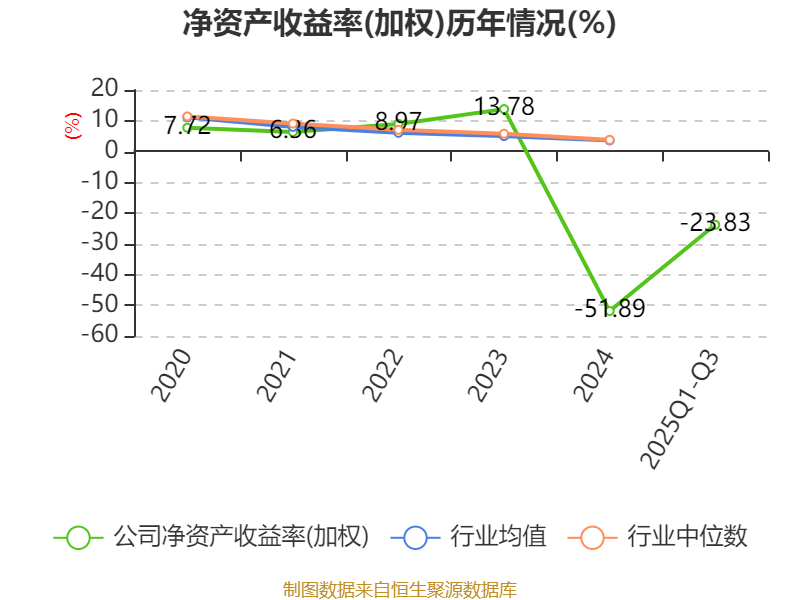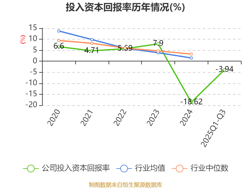 盈利能力方面, 2025年前三季度公司加权平均净资产收益率为-23.83%,同比下降31.44个百分点。公司2025年前三季度投入资本回报率为-3.94%,较上年同期下降7.75个百分点。