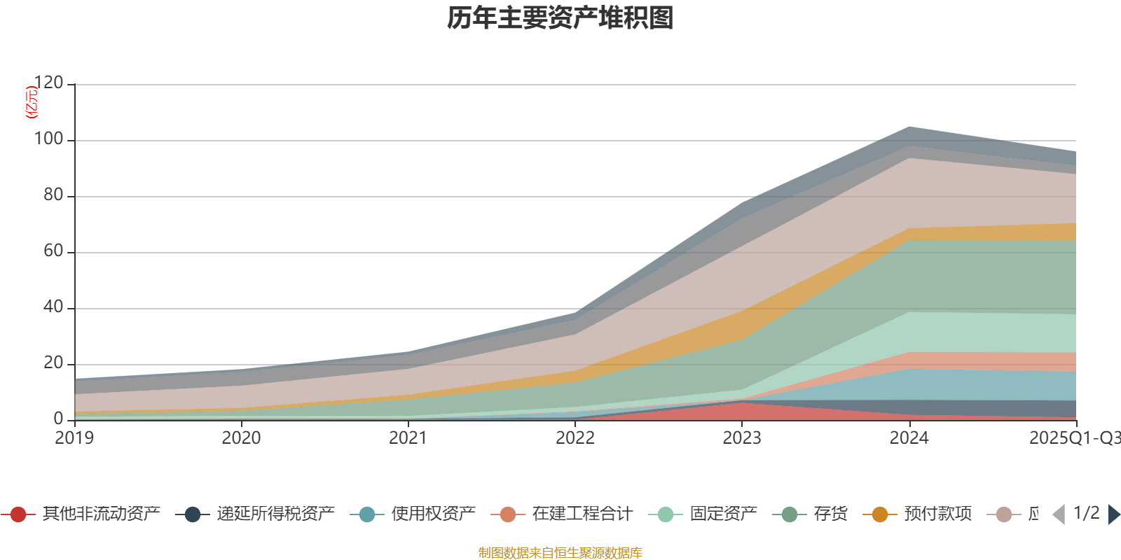 资产重大变化方面,截至2025年三季度末,公司应收票据及应收账款较上年末减少30.31%,占公司总资产比重下降5.7个百分点;存货较上年末增加2.81%,占公司总资产比重上升3.03个百分点;预付款项较上年末增加45.62%,占公司总资产比重上升2.4个百分点;在建工程合计较上年末增加14.76%,占公司总资产比重上升1.45个百分点。