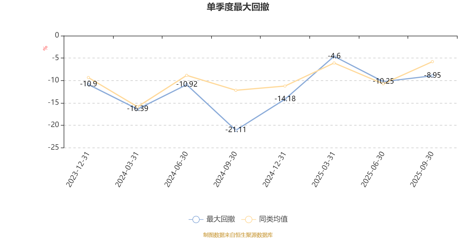 通过所选区间该基金净值增长率分位图,可以观察该基金与同类基金业绩比较情况。图为坐标原点到区间内某时点的净值增长率在同类基金中的分位数。