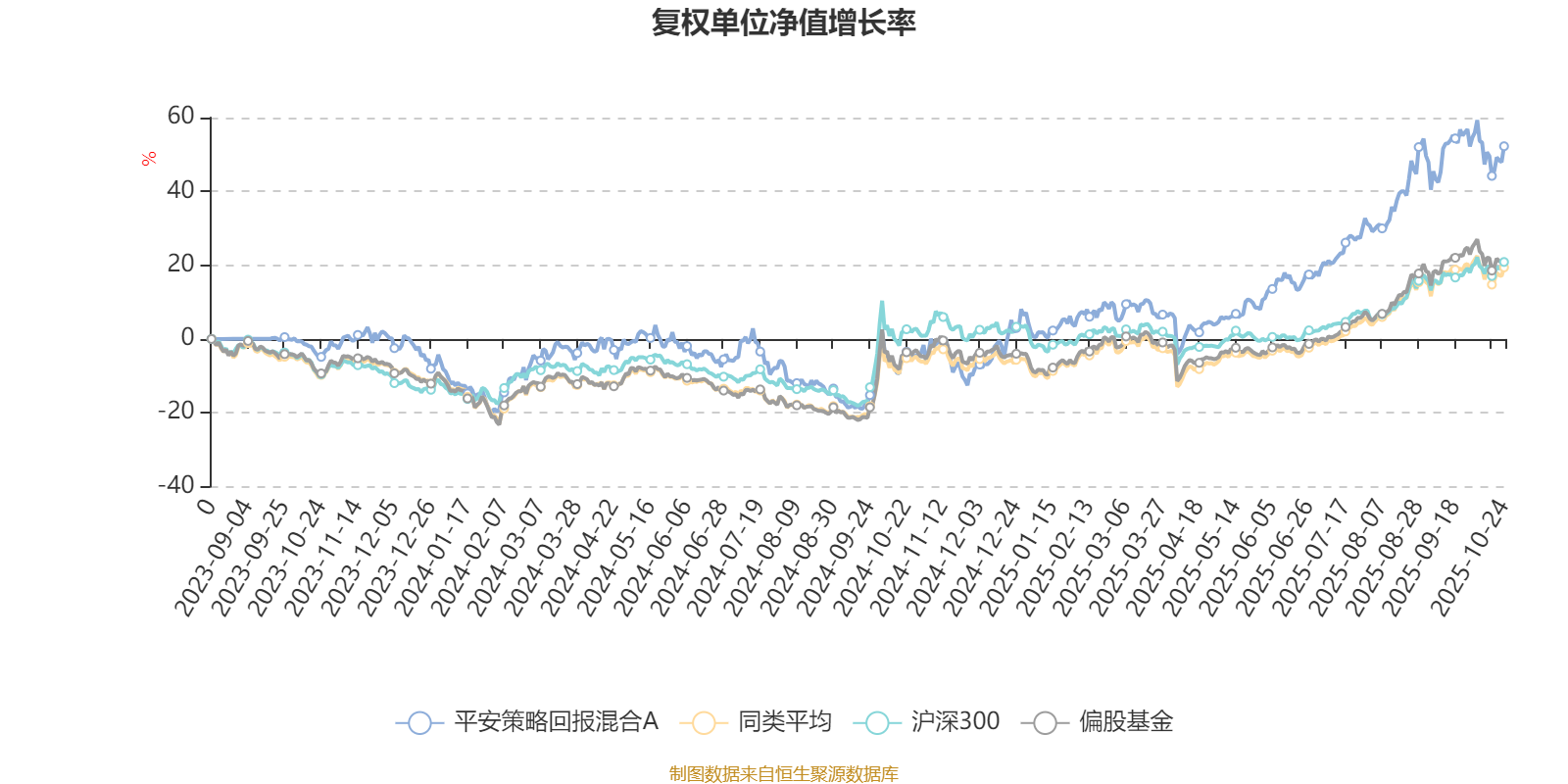 截至10月24日,平安策略回报混合A近三个月复权单位净值增长率为19.22%,位于同类可比基金197/689;近半年复权单位净值增长率为45.42%,位于同类可比基金91/688;近一年复权单位净值增长率为60.51%,位于同类可比基金39/653。