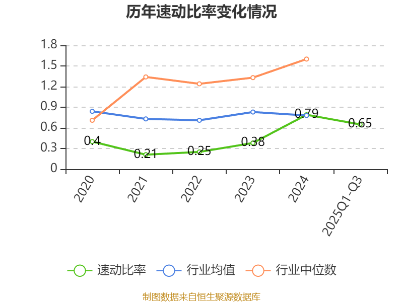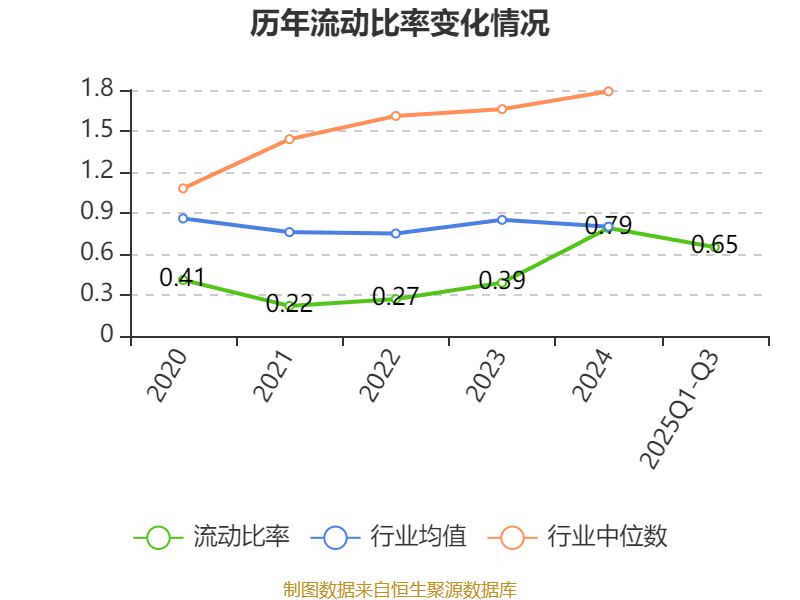 2025年前三季度,公司流动比率为0.65,速动比率为0.65。