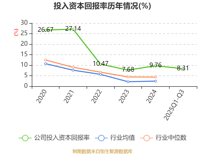 盈利能力方面, 2025年前三季度公司加权平均净资产收益率为8.8%,同比上升0.97个百分点。公司2025年前三季度投入资本回报率为8.31%,较上年同期上升1.22个百分点。