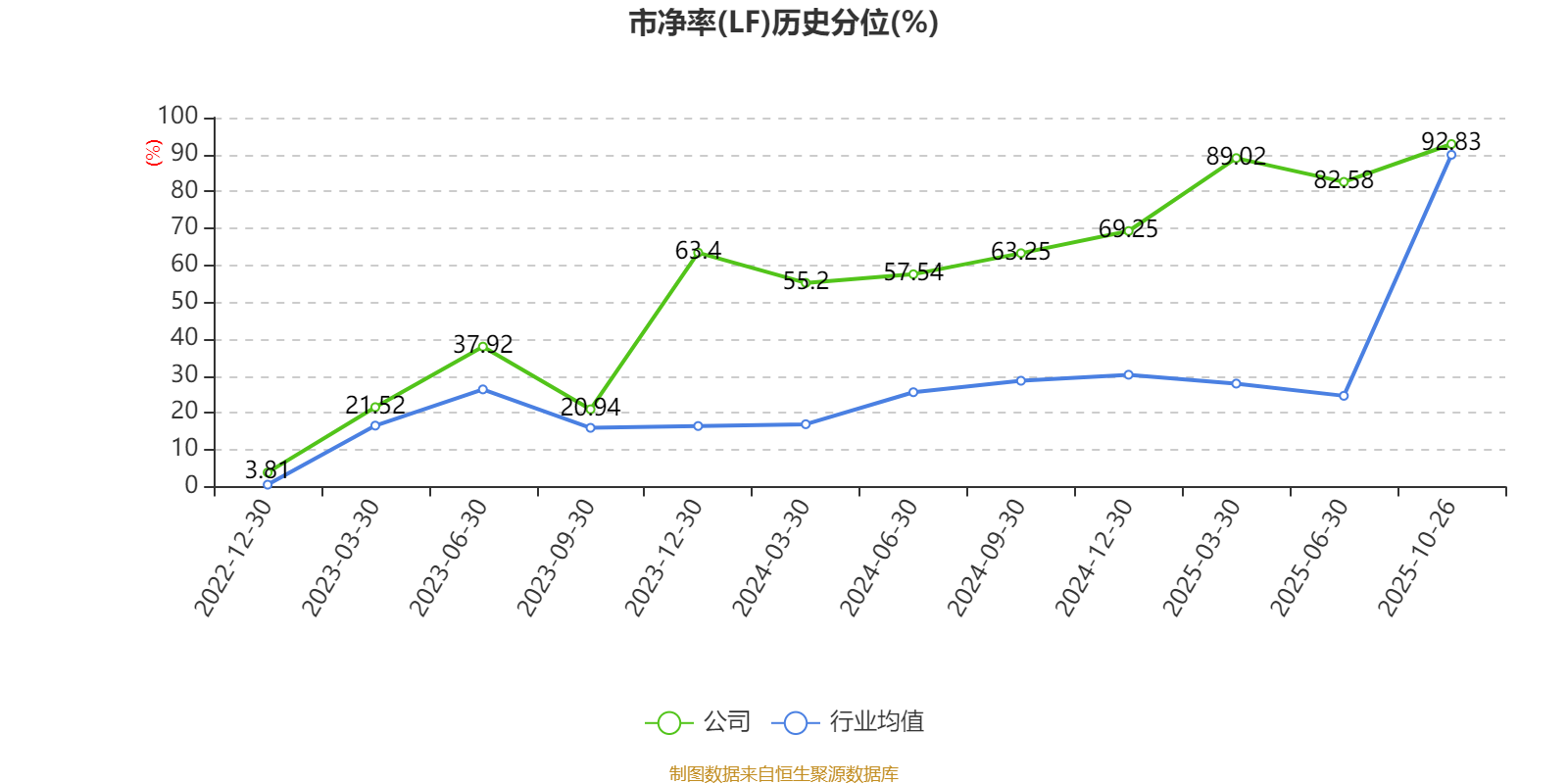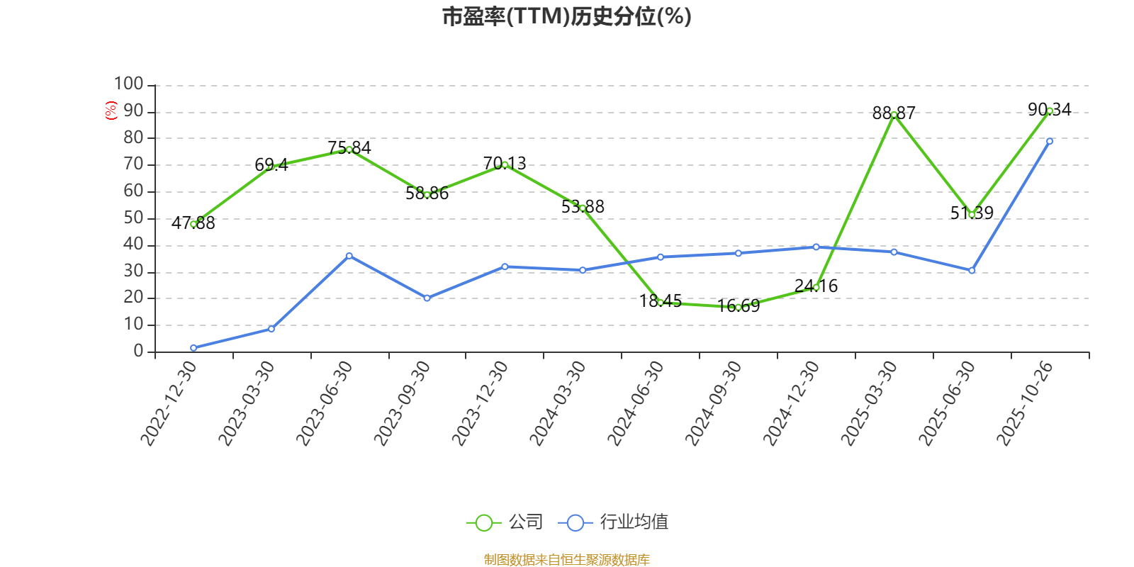 市盈率、市净率为负时,不显示当期分位数,会导致折线图中断。