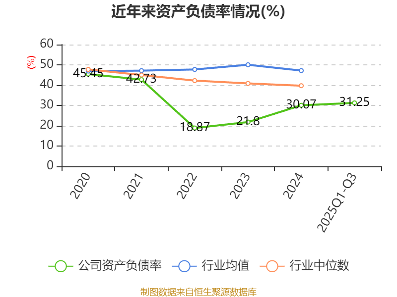 2025年前三季度,公司流动比率为2.79,速动比率为2.44。