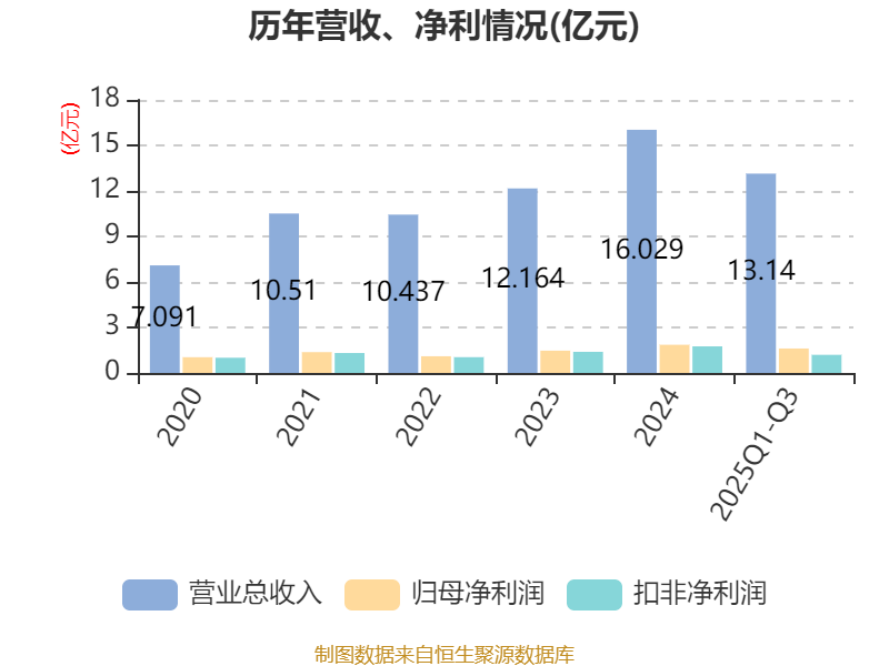 中证智能财讯珠城科技(301280)10月27日披露2025年第三季度报告。前三季度公司实现营业总收入13.14亿元,同比增长15.64%;归母净利润1.61亿元,同比增长19.25%;扣非净利润1.19亿元,同比下降6.29%;经营活动产生的现金流量净额为-928.14万元,上年同期为-5498.43万元;报告期内,珠城科技基本每股收益为1.19元,加权平均净资产收益率为8.80%。