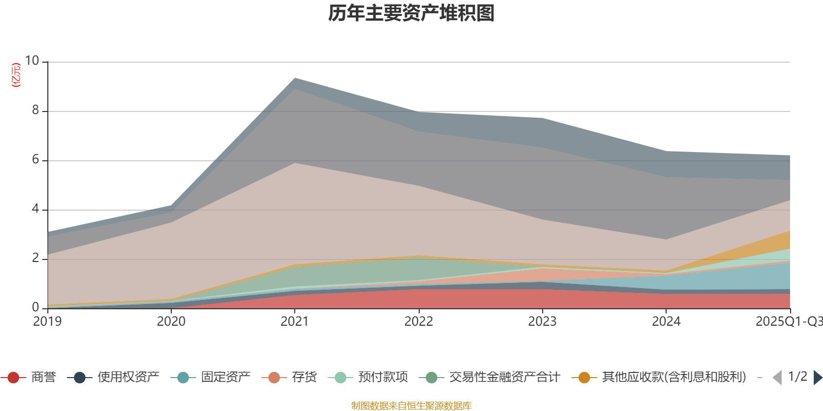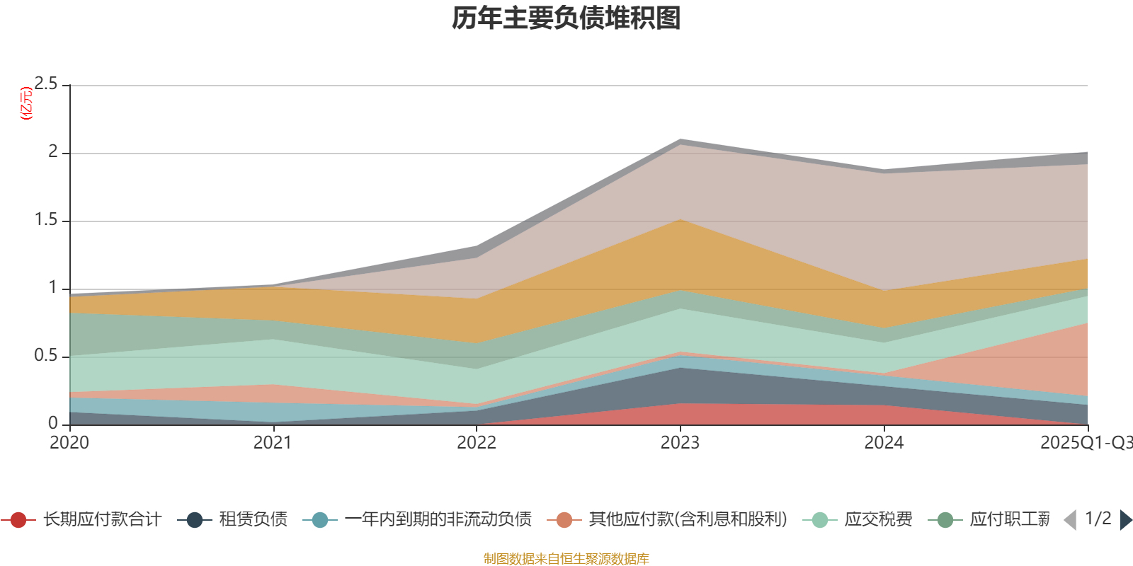 负债重大变化方面,截至2025年三季度末,公司其他应付款(含利息和股利)较上年末增加3132.5%,占公司总资产比重上升8.44个百分点;短期借款较上年末减少19.37%,占公司总资产比重下降2.32个百分点;长期应付款合计较上年末减少100%,占公司总资产比重下降2.23个百分点;合同负债较上年末增加286.19%,占公司总资产比重上升0.98个百分点。