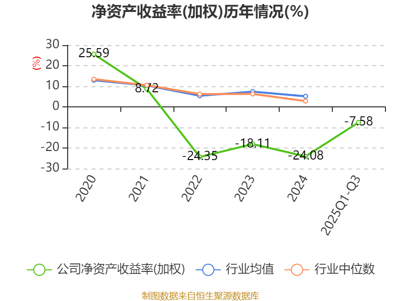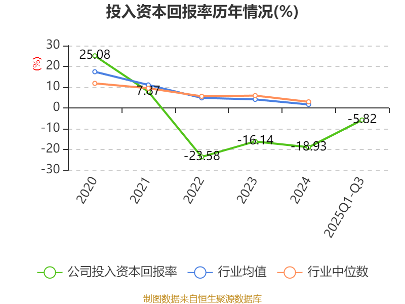 盈利能力方面, 2025年前三季度公司加权平均净资产收益率为-7.58%,同比上升4.24个百分点。公司2025年前三季度投入资本回报率为-5.82%,较上年同期上升3.28个百分点。