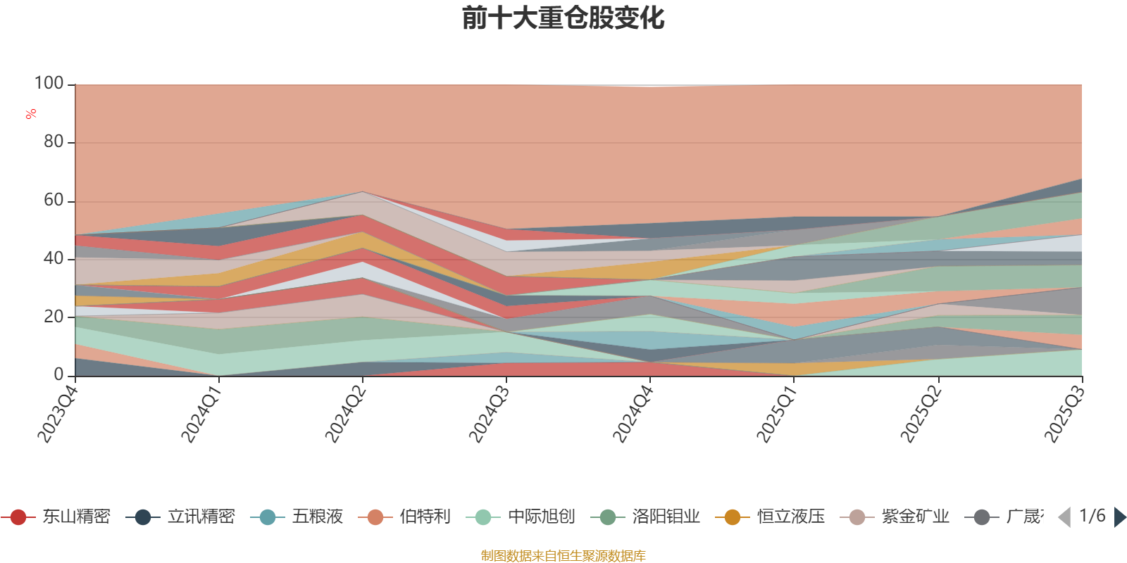 截至2025年三季度末,基金十大重仓股分别是寒武纪、中际旭创、新易盛、沪电股份、生益科技、中科曙光、德福科技、芯原股份、兆易创新、阿里巴巴-W。