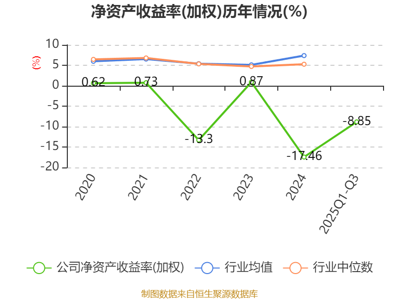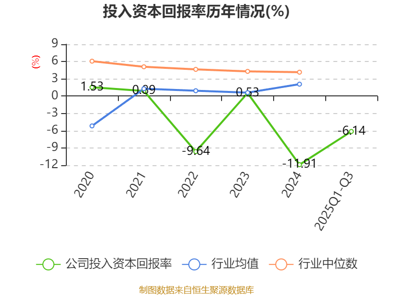 盈利能力方面, 2025年前三季度公司加权平均净资产收益率为-8.85%,同比上升0.71个百分点。公司2025年前三季度投入资本回报率为-6.14%,较上年同期上升0.82个百分点。