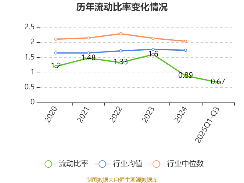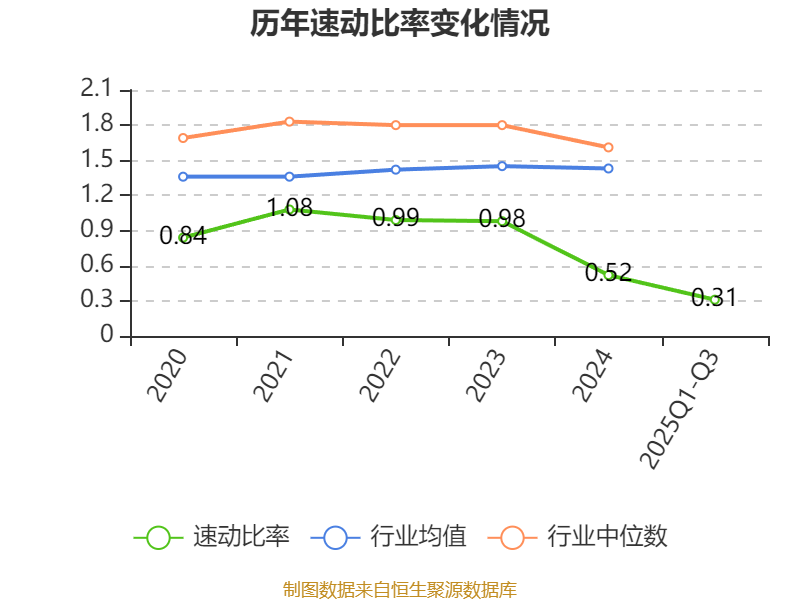 2025年前三季度,公司流动比率为0.67,速动比率为0.31。