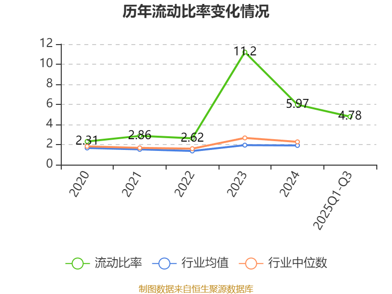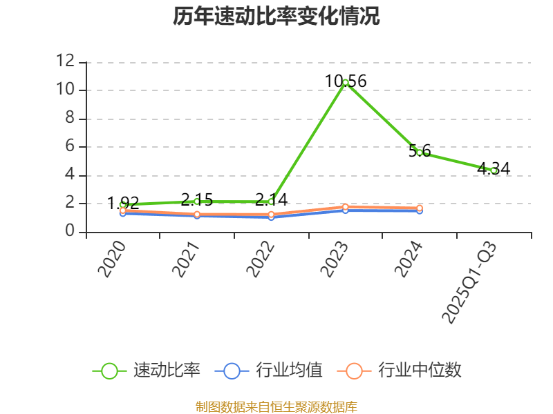 2025年前三季度,公司流动比率为4.78,速动比率为4.34。