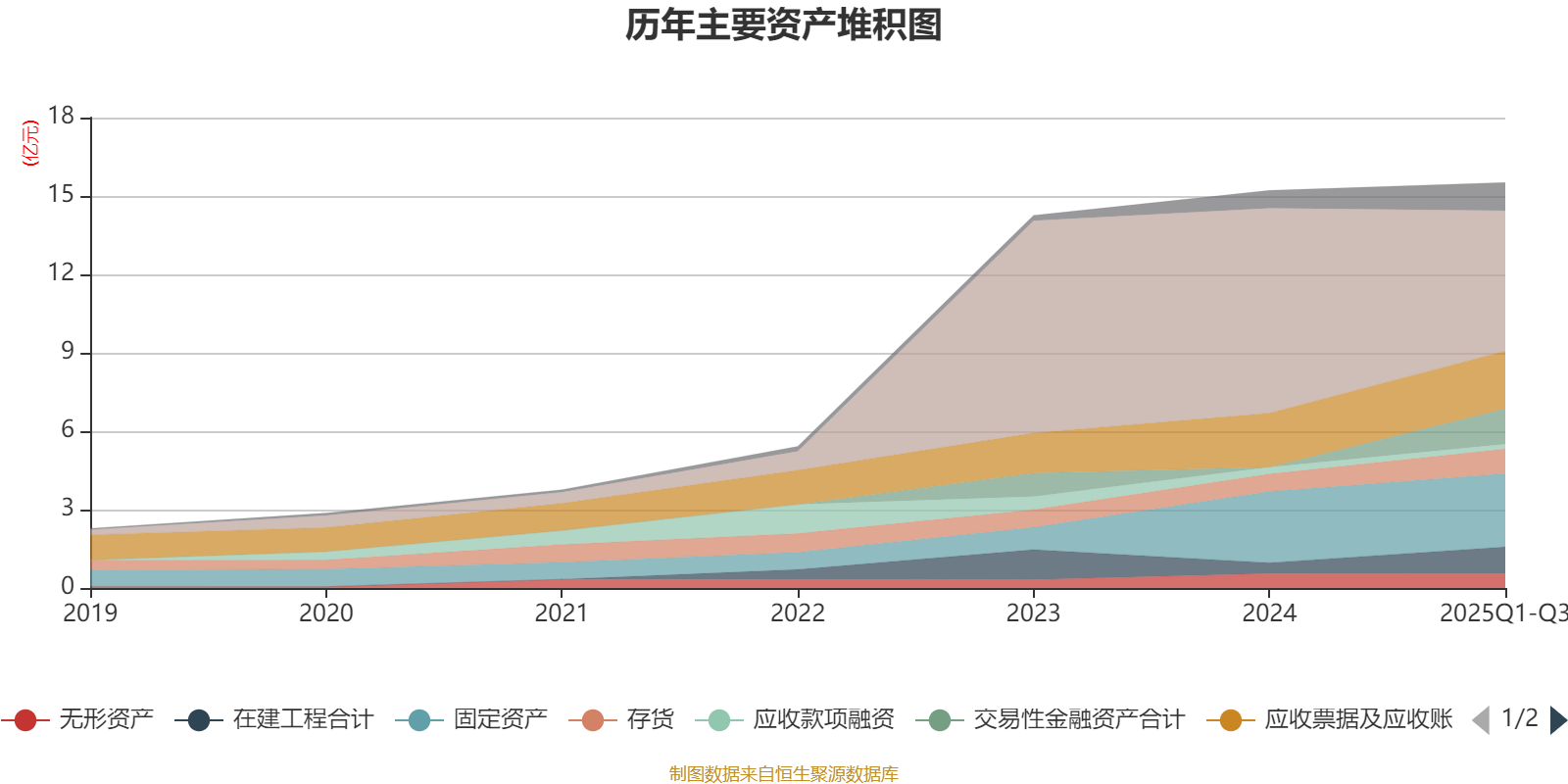 资产重大变化方面,截至2025年三季度末,公司货币资金较上年末减少31.57%,占公司总资产比重下降16.96个百分点;交易性金融资产合计占公司总资产的8.76%,上年末为0;在建工程合计较上年末增加148.66%,占公司总资产比重上升3.88个百分点;存货较上年末增加41.07%,占公司总资产比重上升1.69个百分点。