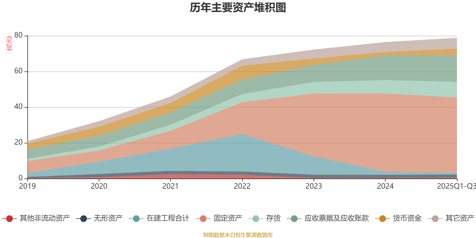 资产重大变化方面,截至2025年三季度末,公司固定资产较上年末减少3.76%,占公司总资产比重下降3.83个百分点;货币资金较上年末增加97.7%,占公司总资产比重上升2.34个百分点;存货较上年末增加16.82%,占公司总资产比重上升1.3个百分点;在建工程合计较上年末减少40.95%,占公司总资产比重下降0.94个百分点。