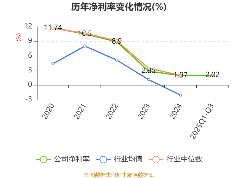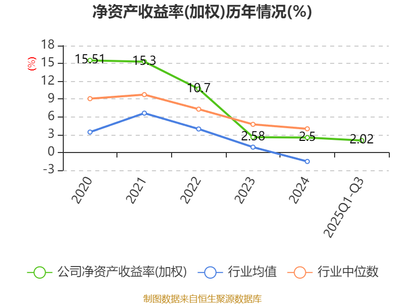 盈利能力方面, 2025年前三季度公司加权平均净资产收益率为2.02%,同比下降0.42个百分点。公司2025年前三季度投入资本回报率为1.97%,较上年同期上升0.16个百分点。