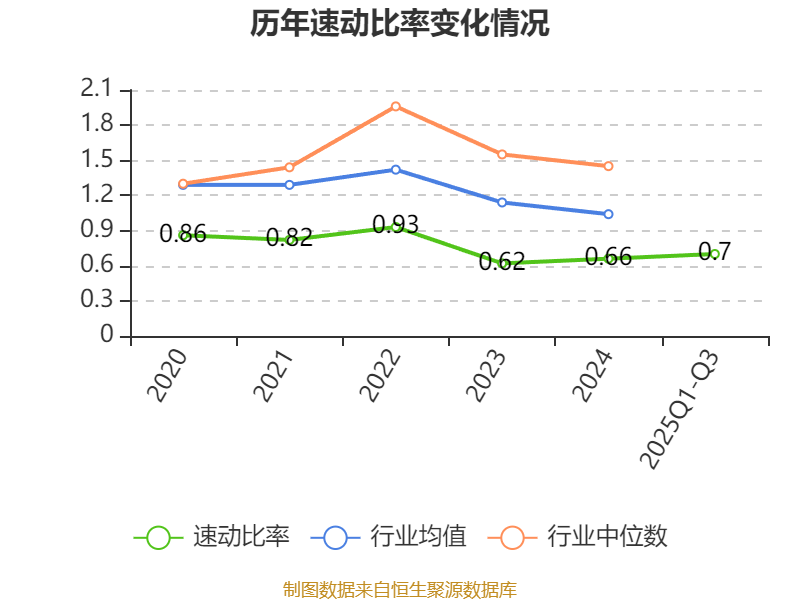 2025年前三季度,公司流动比率为0.99,速动比率为0.7。