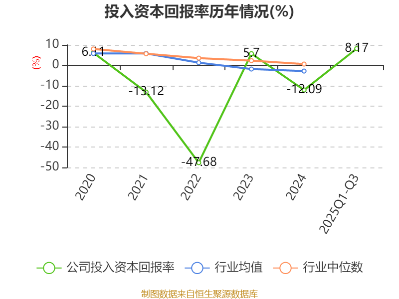 盈利能力方面, 2025年前三季度公司加权平均净资产收益率为11.46%,同比上升32.72个百分点。公司2025年前三季度投入资本回报率为8.17%,较上年同期上升29.14个百分点。