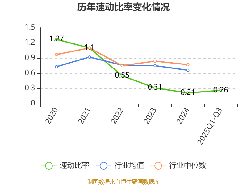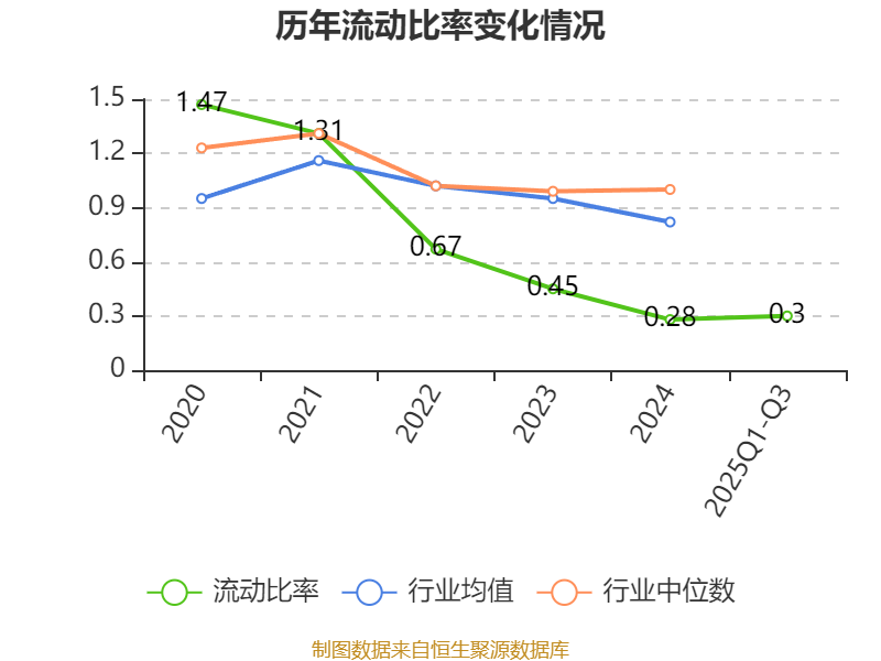 2025年前三季度,公司流动比率为0.3,速动比率为0.26。