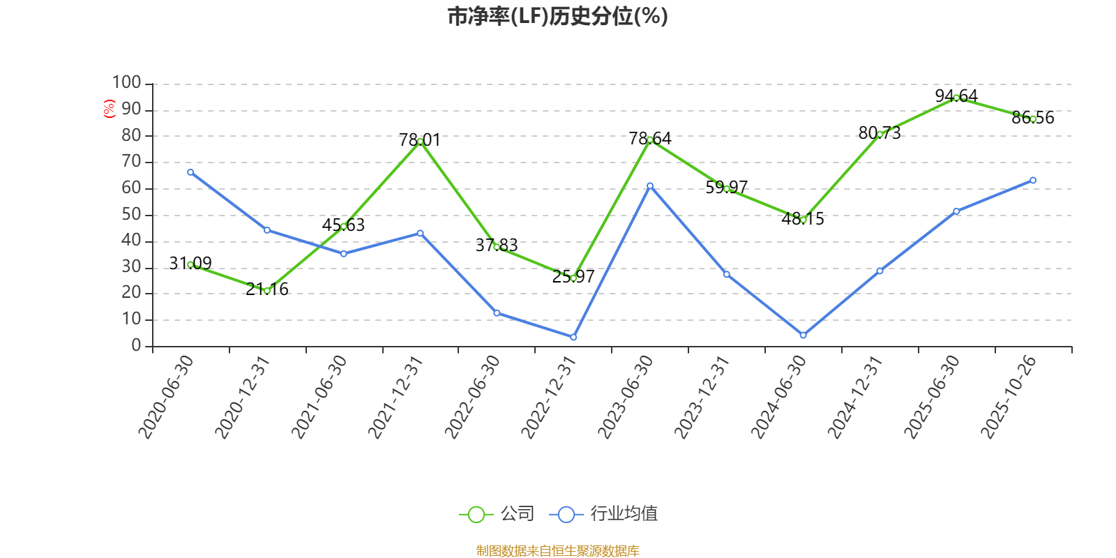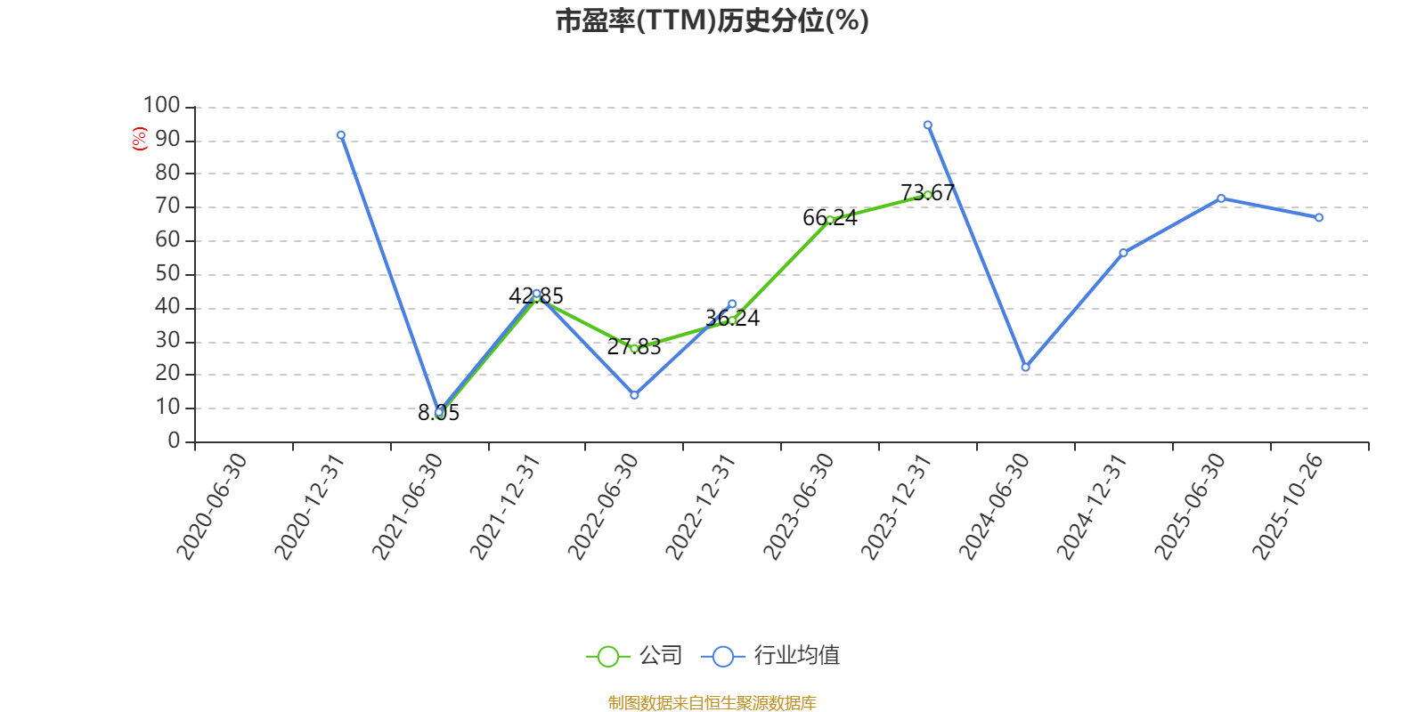 市盈率、市净率为负时,不显示当期分位数,会导致折线图中断。