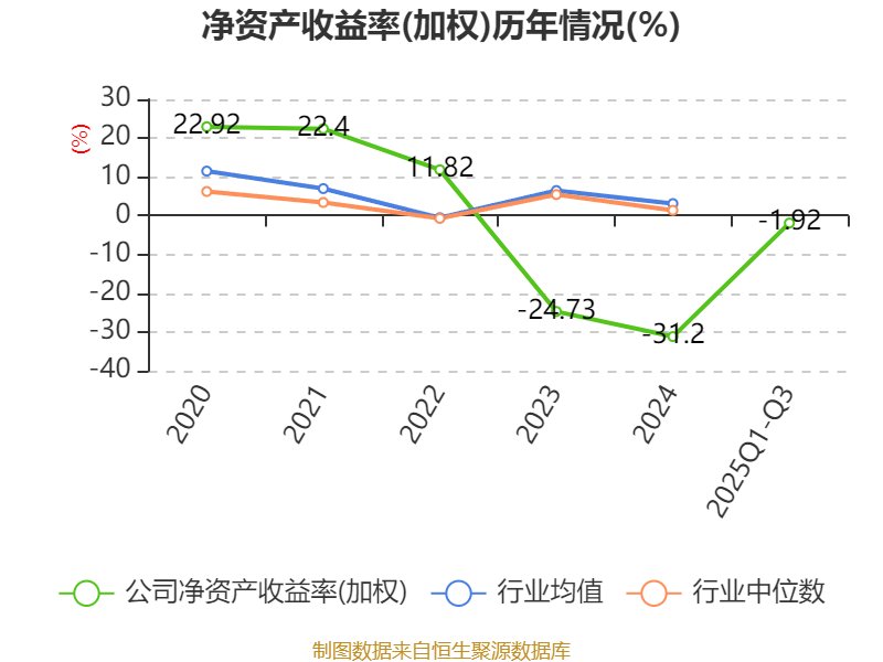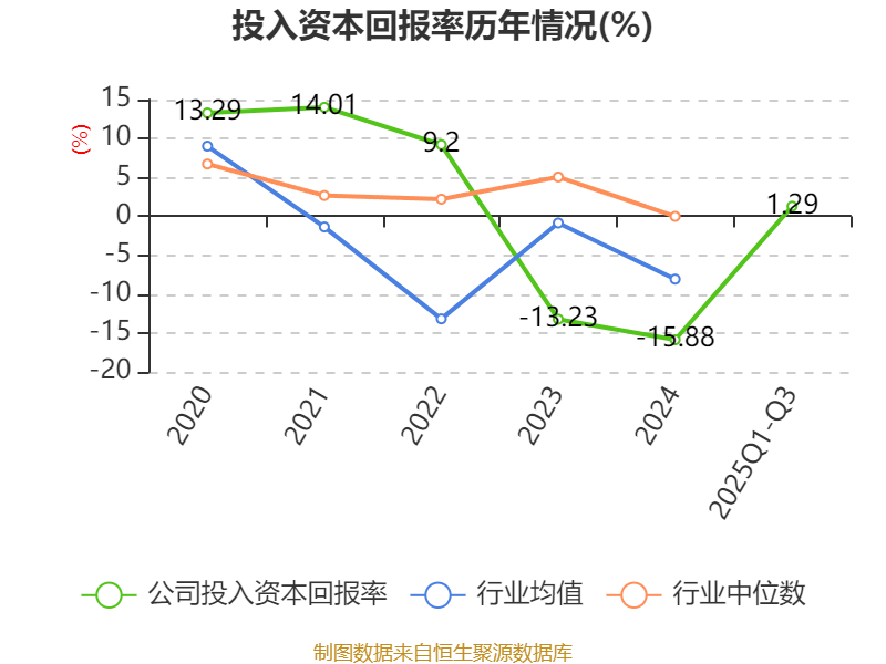 盈利能力方面, 2025年前三季度公司加权平均净资产收益率为-1.92%,同比下降4.55个百分点。公司2025年前三季度投入资本回报率为1.29%,较上年同期下降1.46个百分点。