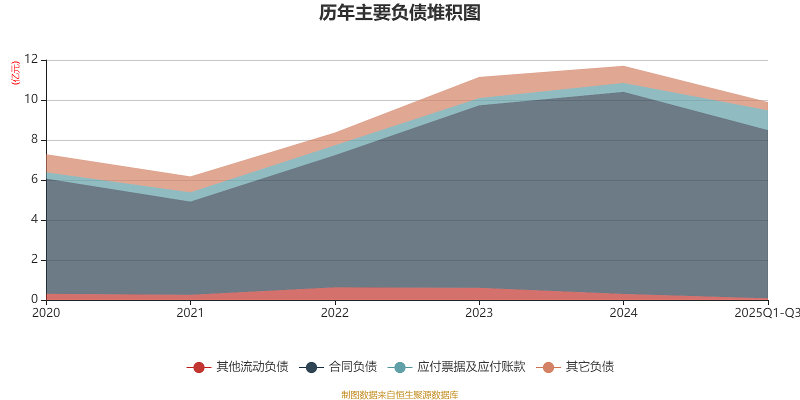 负债重大变化方面,截至2025年三季度末,公司合同负债较上年末减少16.78%,占公司总资产比重下降14.67个百分点;应付票据及应付账款较上年末增加122.46%,占公司总资产比重上升2.25个百分点;应付职工薪酬较上年末减少83.05%,占公司总资产比重下降1.56个百分点;其他流动负债较上年末减少72.21%,占公司总资产比重下降1.21个百分点。