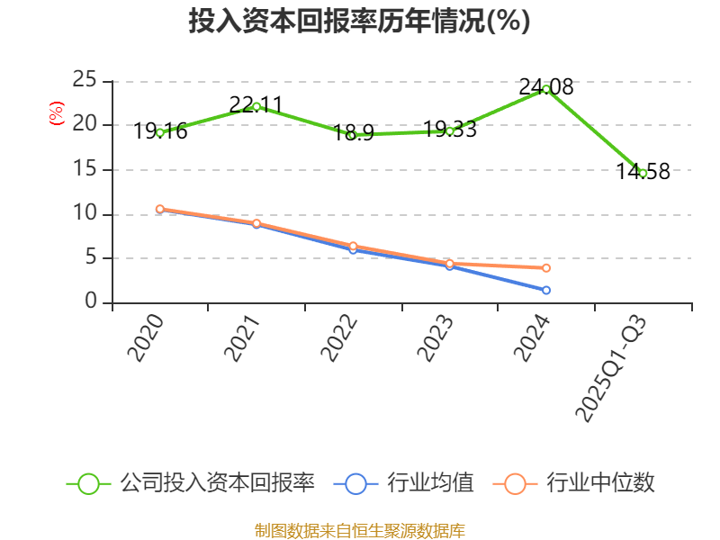 盈利能力方面, 2025年前三季度公司加权平均净资产收益率为12.75%,同比下降7.95个百分点。公司2025年前三季度投入资本回报率为14.58%,较上年同期下降5.48个百分点。