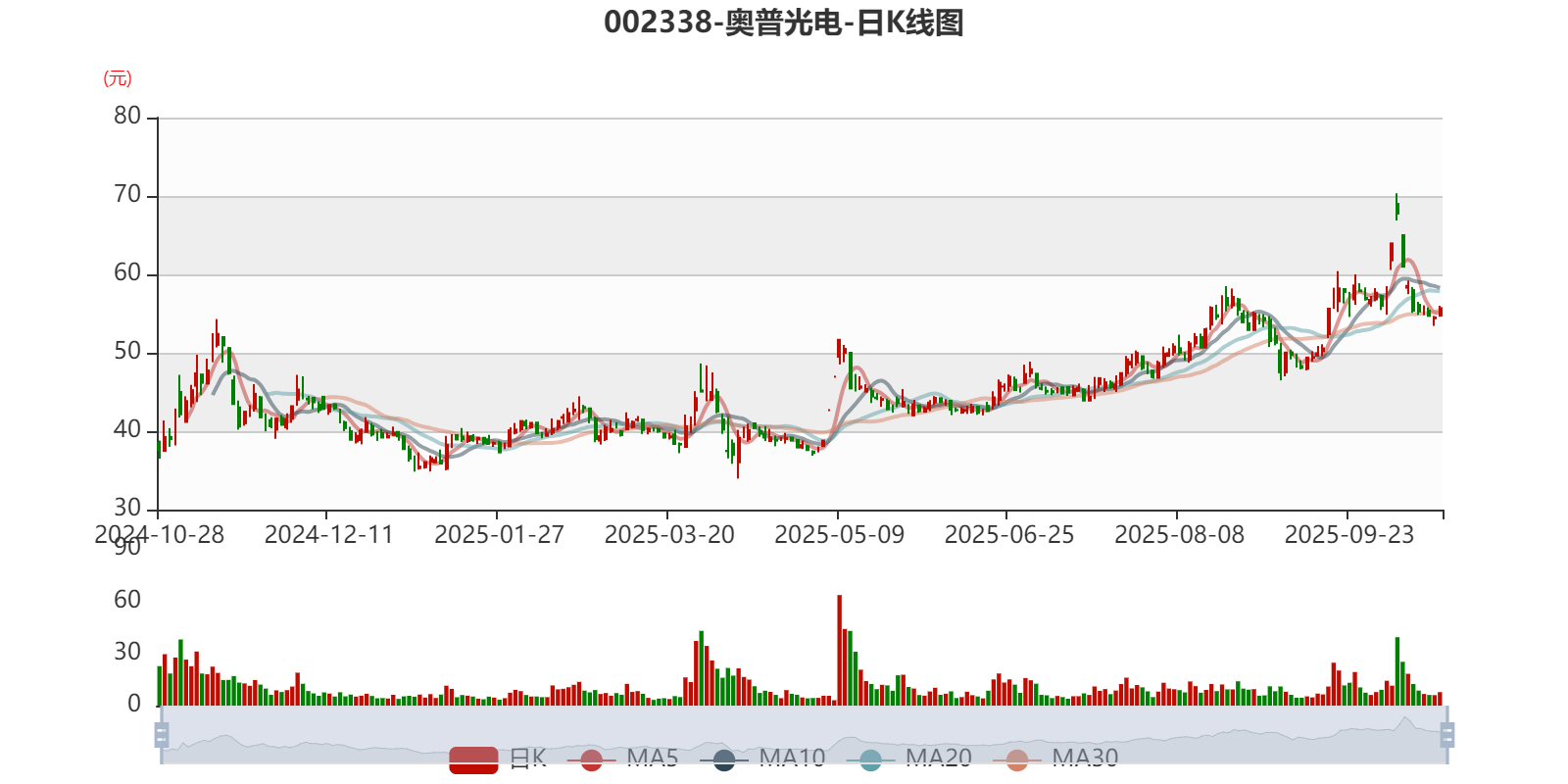 中证智能财讯奥普光电(002338)10月27日披露2025年第三季度报告。前三季度公司实现营业总收入5.1亿元,同比下降2.38%;归母净利润3805万元,同比下降16.18%;扣非净利润2980.44万元,同比下降18.73%;经营活动产生的现金流量净额为-7648.84万元,上年同期为-1.43亿元;报告期内,奥普光电基本每股收益为0.16元,加权平均净资产收益率为2.83%。