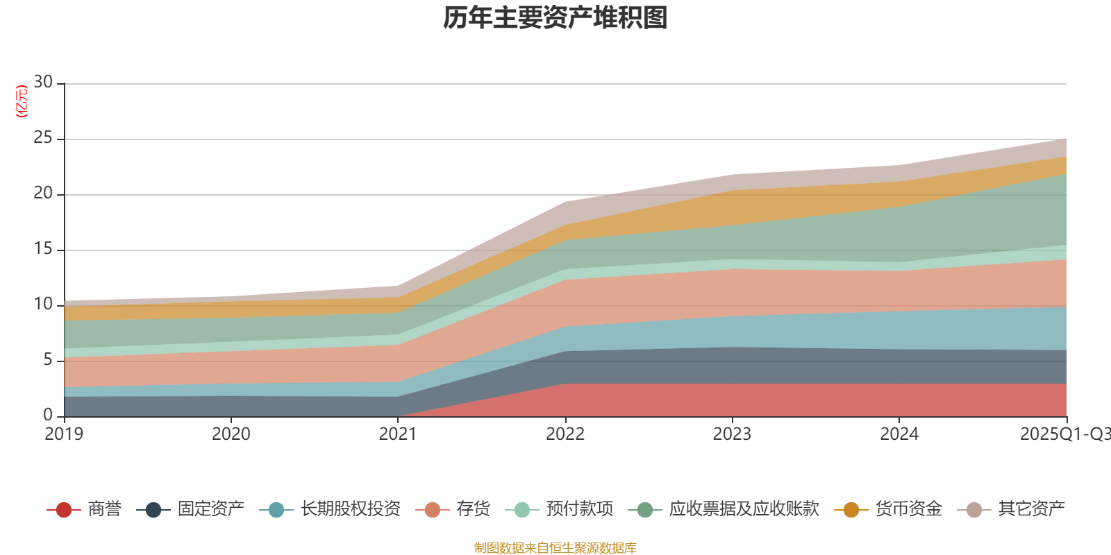 资产重大变化方面,截至2025年三季度末,公司货币资金较上年末减少31.6%,占公司总资产比重下降3.84个百分点;应收票据及应收账款较上年末增加28.54%,占公司总资产比重上升3.56个百分点;预付款项较上年末增加65.9%,占公司总资产比重上升1.75个百分点;固定资产较上年末减少1.92%,占公司总资产比重下降1.55个百分点。