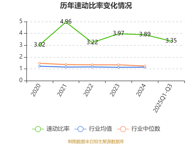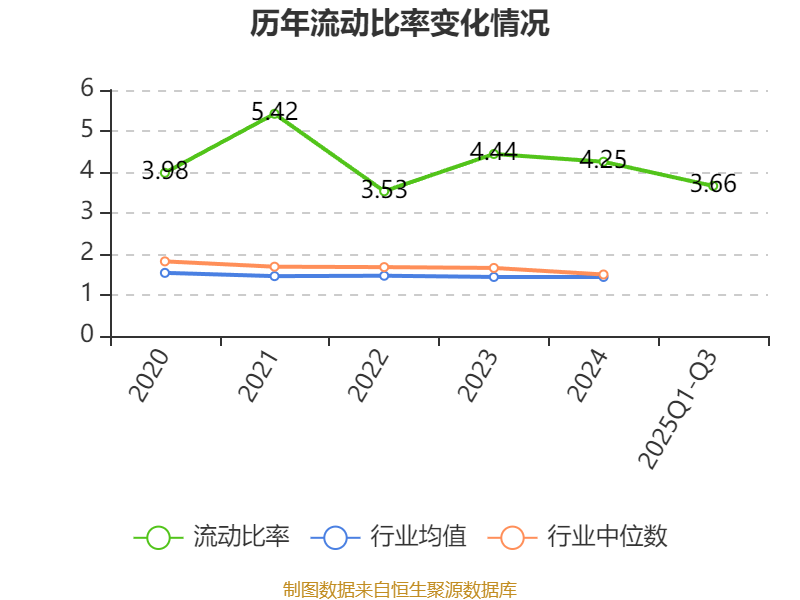 2025年前三季度,公司流动比率为3.66,速动比率为3.35。
