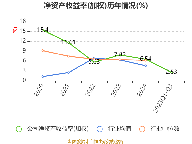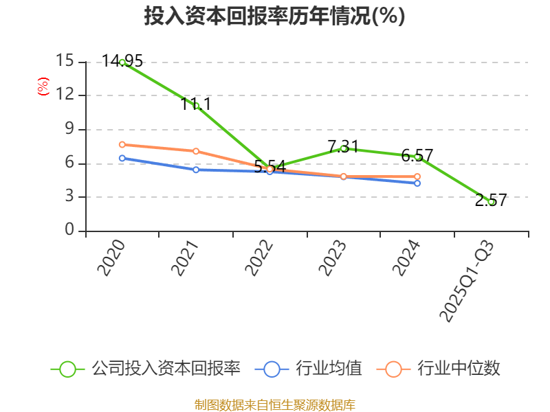 盈利能力方面, 2025年前三季度公司加权平均净资产收益率为2.53%,同比下降2.37个百分点。公司2025年前三季度投入资本回报率为2.57%,较上年同期下降2.04个百分点。
