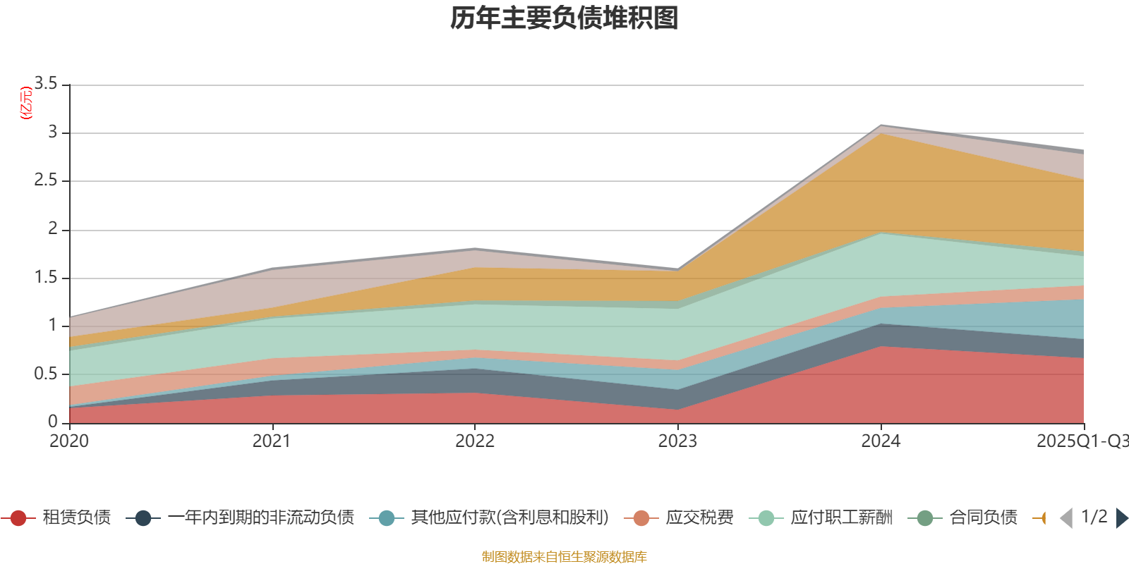 负债重大变化方面,截至2025年三季度末,公司应付职工薪酬较上年末减少53.7%,占公司总资产比重下降2.05个百分点;应付票据及应付账款较上年末减少26.89%,占公司总资产比重下降1.66个百分点;其他应付款(含利息和股利)较上年末增加153%,占公司总资产比重上升1.4个百分点;短期借款较上年末增加247.25%,占公司总资产比重上升1.04个百分点。