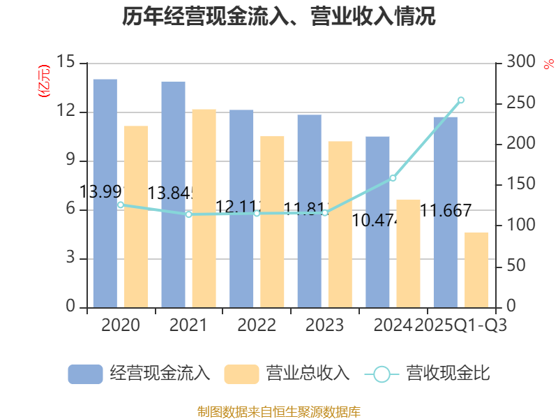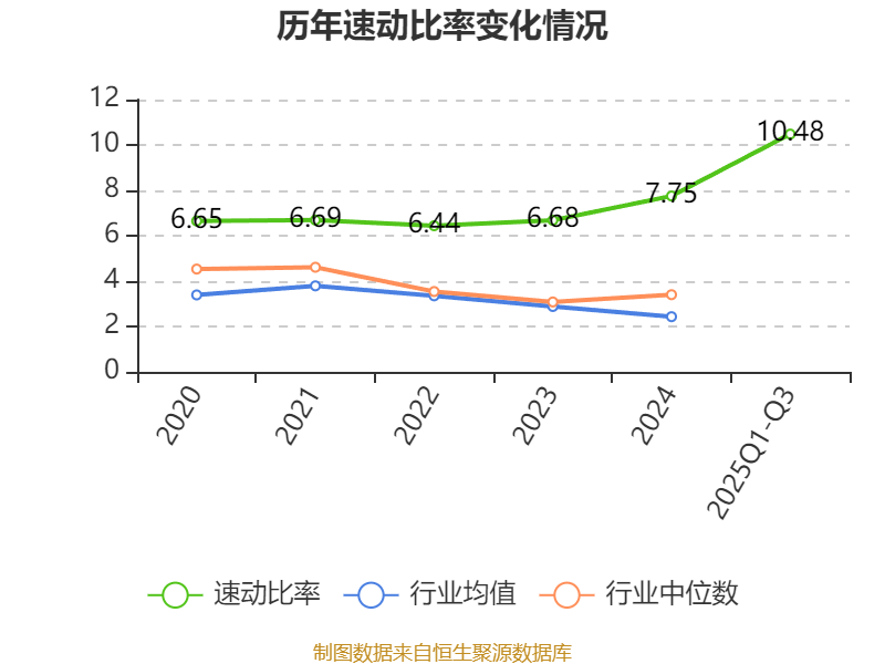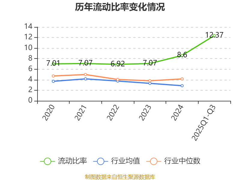 2025年前三季度,公司流动比率为12.37,速动比率为10.48。