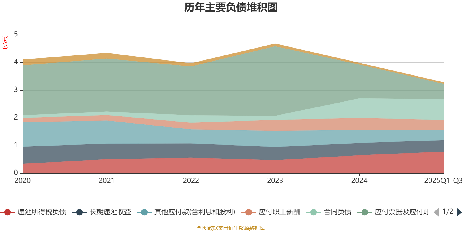 负债重大变化方面,截至2025年三季度末,公司应付票据及应付账款较上年末减少54.74%,占公司总资产比重下降1.13个百分点;递延所得税负债较上年末增加19.67%,占公司总资产比重上升0.2个百分点;其他应付款(含利息和股利)较上年末减少22.92%,占公司总资产比重下降0.19个百分点;应付职工薪酬较上年末减少14.86%,占公司总资产比重下降0.11个百分点。
