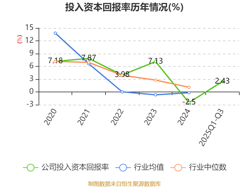 盈利能力方面, 2025年前三季度公司加权平均净资产收益率为2.5%,同比上升2.79个百分点。公司2025年前三季度投入资本回报率为2.43%,较上年同期上升3.18个百分点。