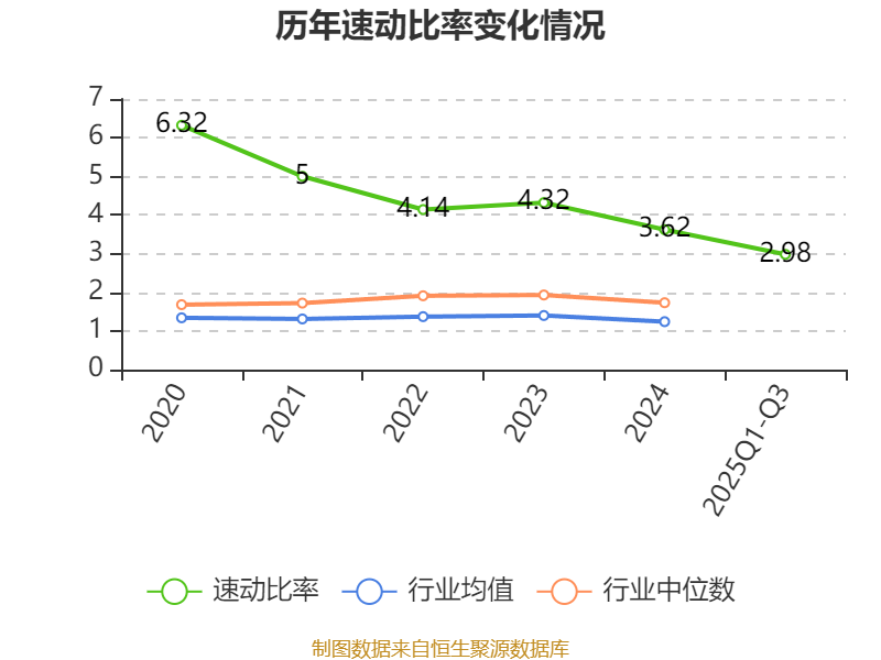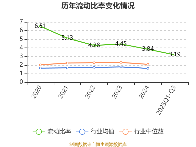 2025年前三季度,公司流动比率为3.19,速动比率为2.98。