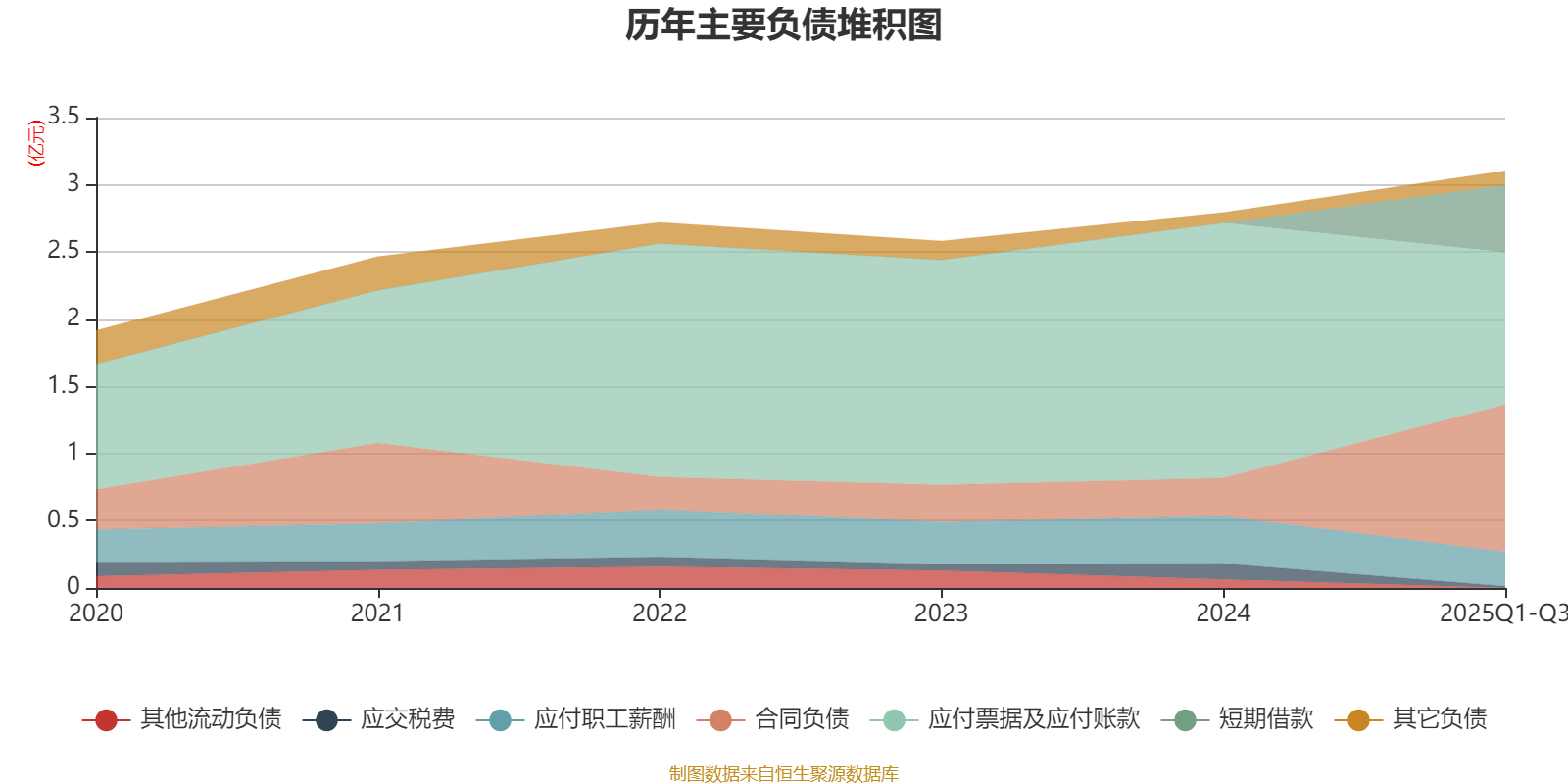 负债重大变化方面,截至2025年三季度末,公司合同负债较上年末增加284.99%,占公司总资产比重上升5.23个百分点;应付票据及应付账款较上年末减少40.28%,占公司总资产比重下降4.88个百分点;短期借款占公司总资产的3.22%,上年末为0;应交税费较上年末减少89.36%,占公司总资产比重下降0.68个百分点。