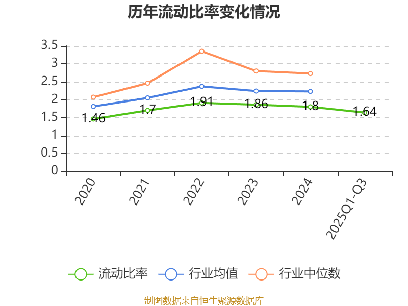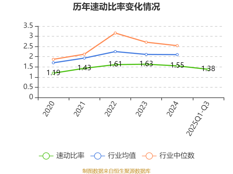 2025年前三季度,公司流动比率为1.64,速动比率为1.38。