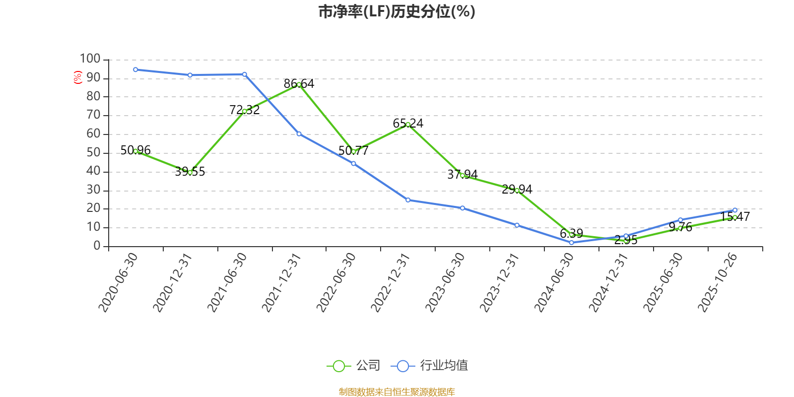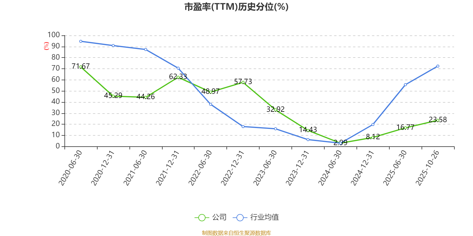 市盈率、市净率为负时,不显示当期分位数,会导致折线图中断。