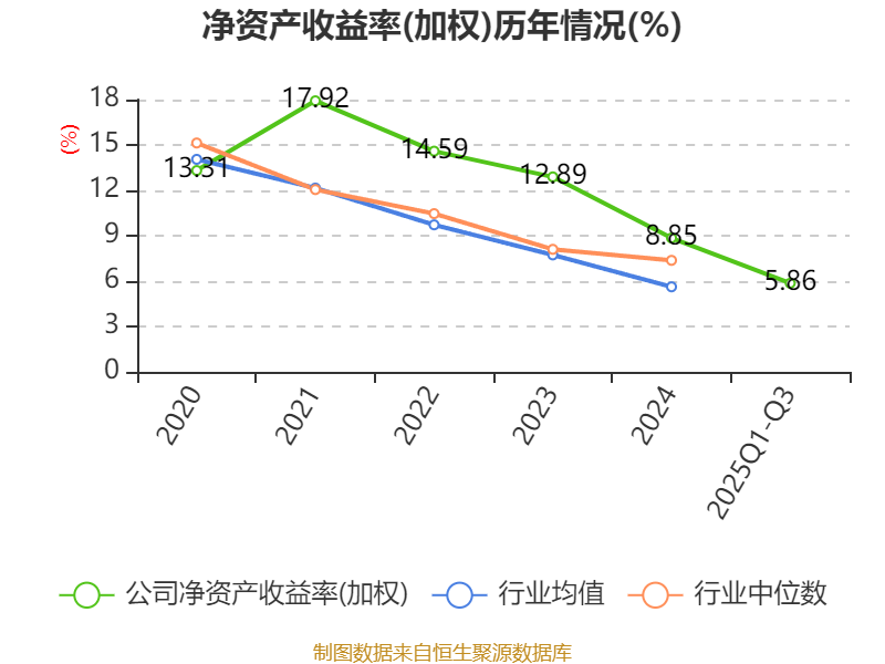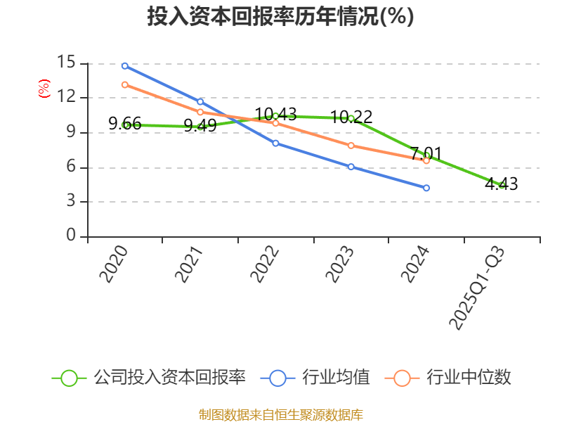 盈利能力方面, 2025年前三季度公司加权平均净资产收益率为5.86%,同比上升0.16个百分点。公司2025年前三季度投入资本回报率为4.43%,较上年同期下降0.07个百分点。
